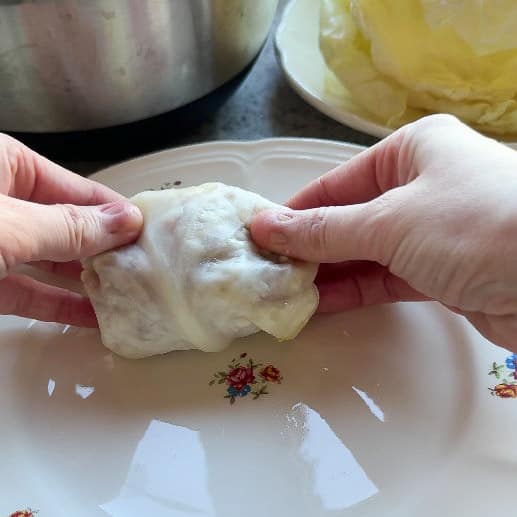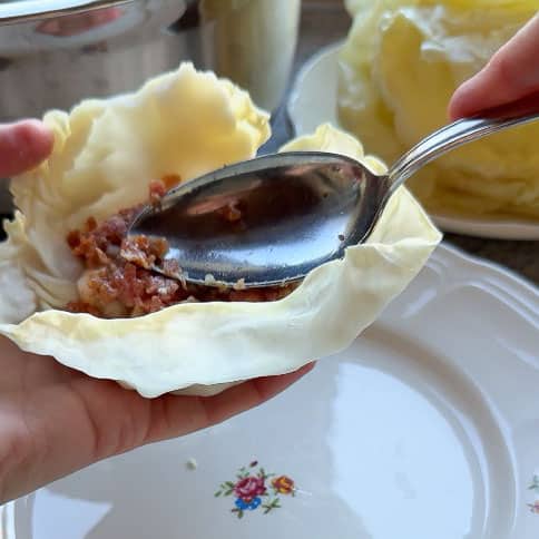 Carefully separate the individual cabbage leaves and fill each one with the ground meat mixture.