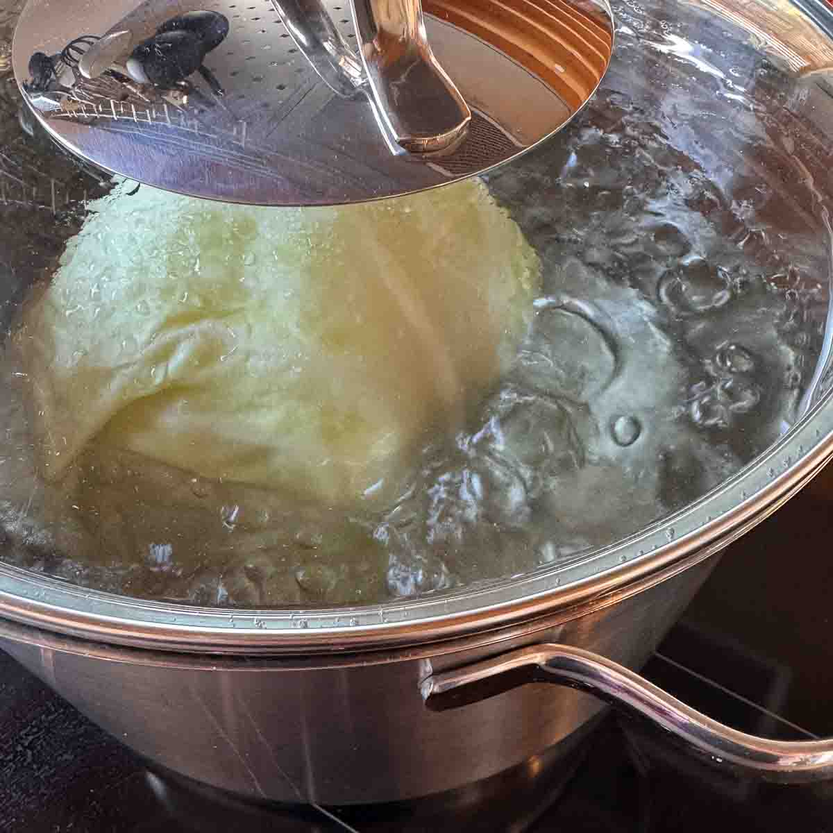 • Place the cabbage in a large pot of salted water, cook for 20 minutes, then cool it under cold water.