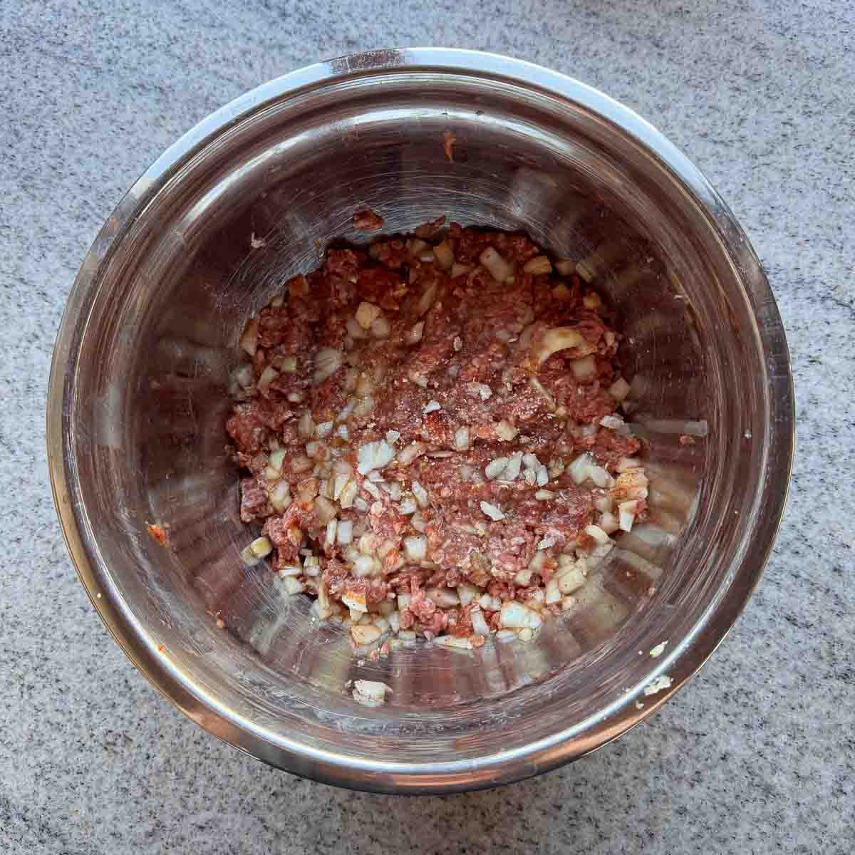 Optional: you can add the chopped onion and paprika raw directly to the ground meat, without sautéing.